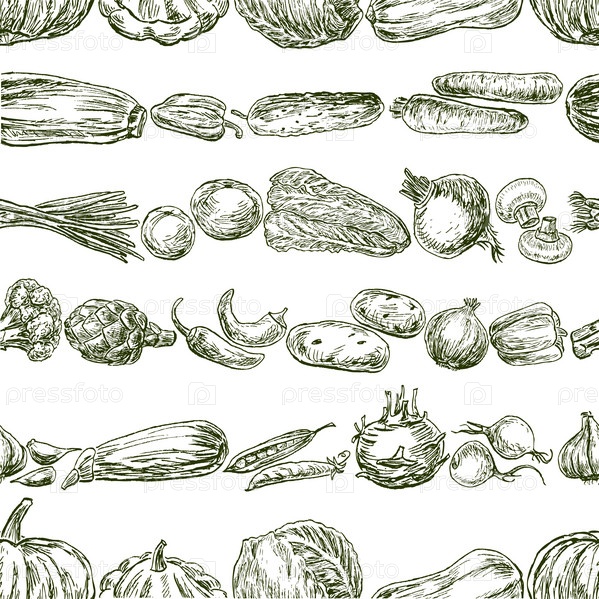 Бесшовный фон из различных эскизов овощей
