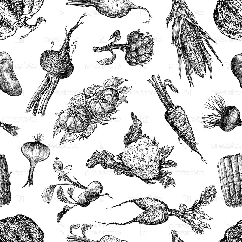 Бесшовный рисунок различных эскизов овощей