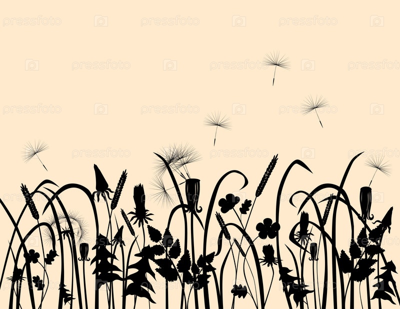 Силуэты луговых растений на рассвете