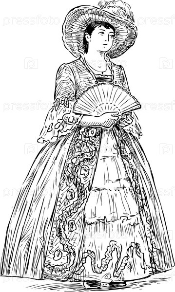 Эскиз благородной дамы с веером