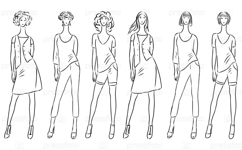 Эскизы модных стройных женщин в коллекции летней одежды