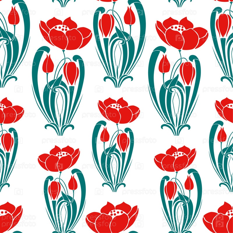 Бесшовный узор из декоративных тюльпанов