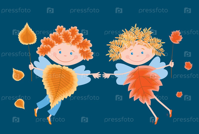 Векторное изображение веселых осенних эльфов