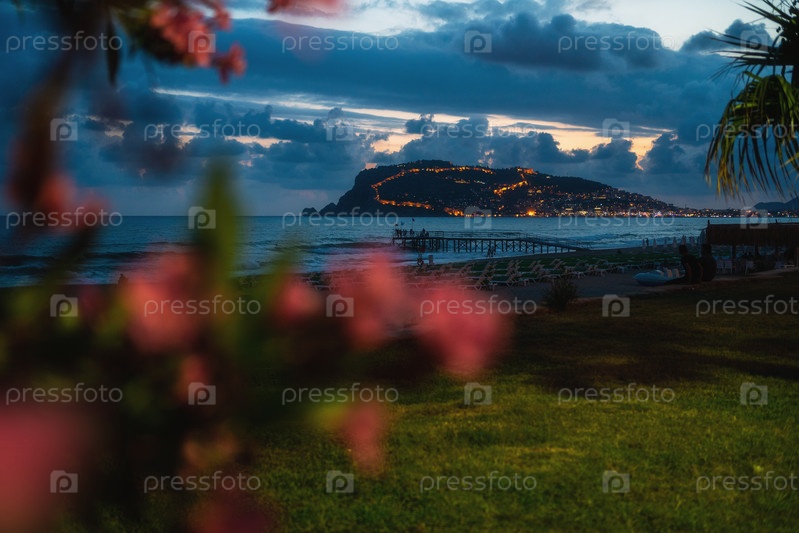 Красивая ночная сцена на пляже Алании в Турции
