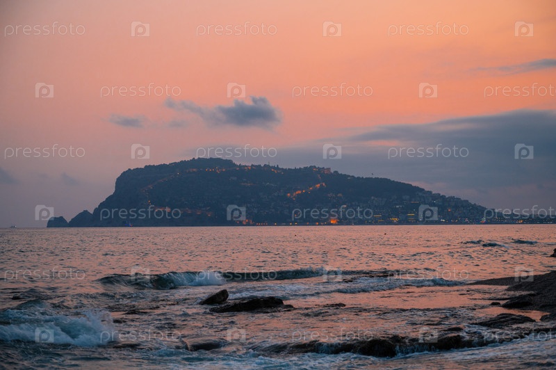 Красивая вечерняя сцена на пляже Алании