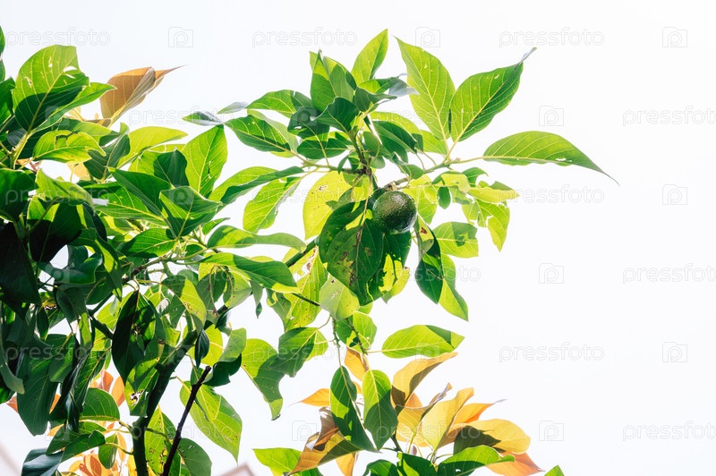 Лимон, растущий на дереве в саду