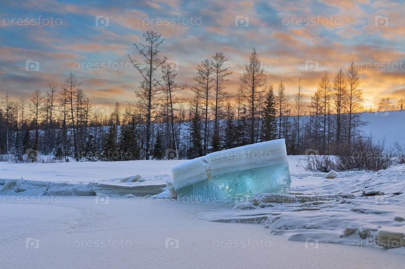Глыба бирюзового льда на закате