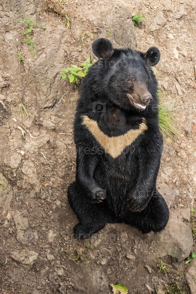 Гималайский медведь сидит на земле