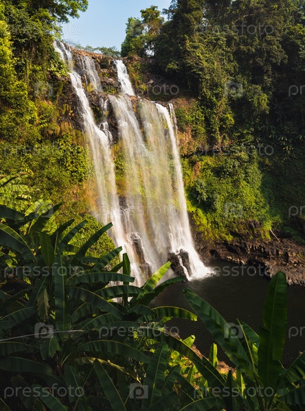 Красивый водопад Тад Юанг на плато Болавен. Лаосский пейзаж