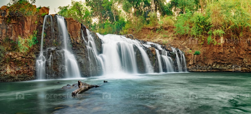 Красивый водопад Тад Лоу. Лаосский пейзаж. Панорама