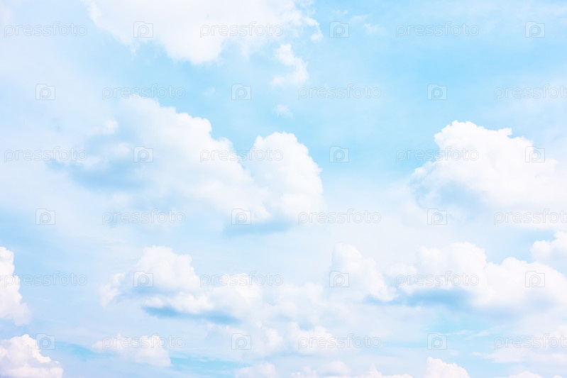 Яркое пастельно-голубое небо с белыми облаками