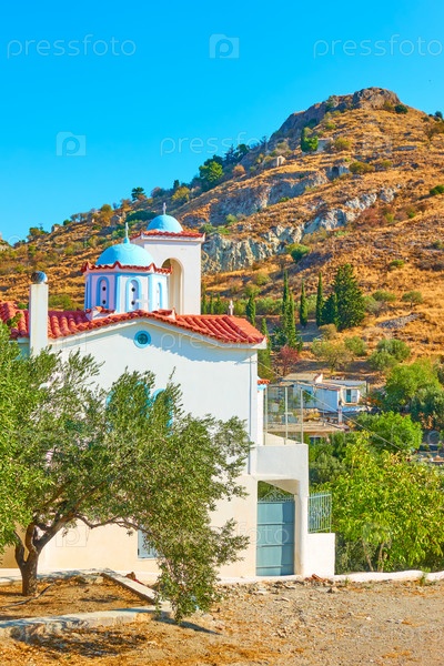 Греческий сельский пейзаж с монастырем Святой Екатерины