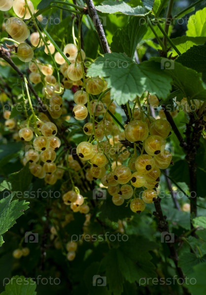 Спелая белая смородина в саду