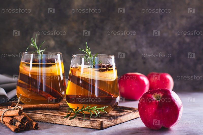 Яблочная Маргарита со специями и розмарином в стаканах на столе