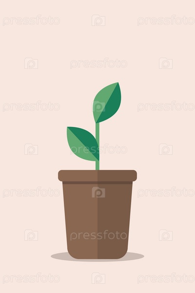 Простое растение с зелеными листьями в коричневом горшке. уютный дом, детали интерьера, натуральность