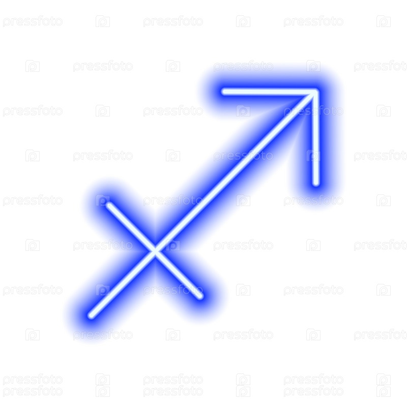 Синий неоновый знак зодиака Стрелец на белом. Прогнозы, астрология, гороскоп. Векторная иллюстрация