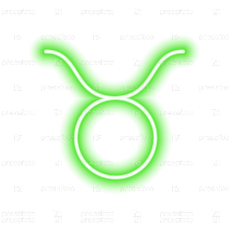 Зеленый неоновый знак зодиака Телец на белом. Прогнозы, астрология, гороскоп. Векторная иллюстрация