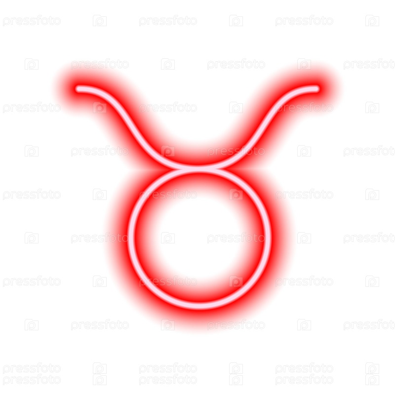 Красный неоновый знак зодиака Телец на белом. Прогнозы, астрология, гороскоп. Векторная иллюстрация