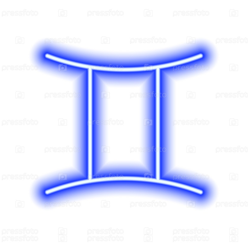 Синий неоновый знак зодиака Близнецы на белом. Прогнозы, астрология, гороскоп