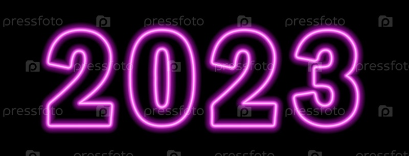 Розовый неоновый цвет 2023 года на черном фоне. Векторная иллюстрация
