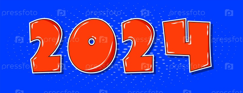 Красный 2024 год в стиле поп-арт на синем фоне