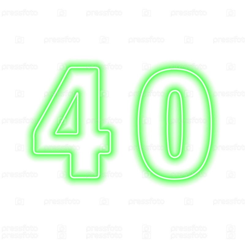 Неоново-зеленый номер 40 изолирован на белом. Серийный номер, цена, место. Векторная иллюстрация