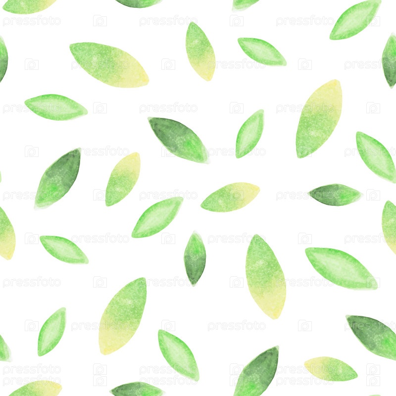 Бесшовный узор с нарисованными вручную акварельными зелеными листьями. Абстрактная фоновая иллюстрация. Органическая, натуральная концепция свежести для текстиля, печати и т. д