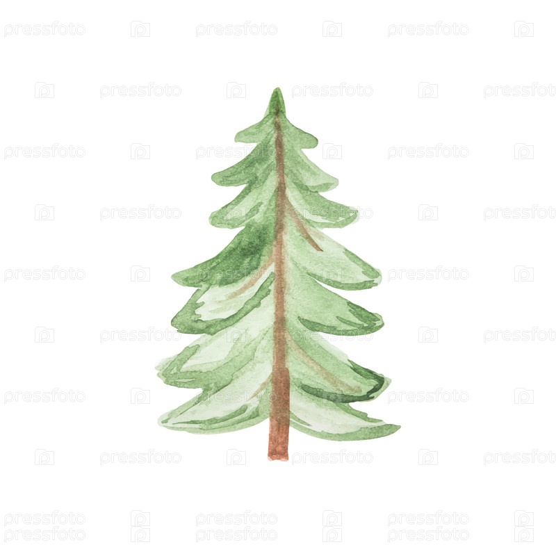 Нарисованная вручную акварель зеленая рождественская елка изолирована на белом фоне