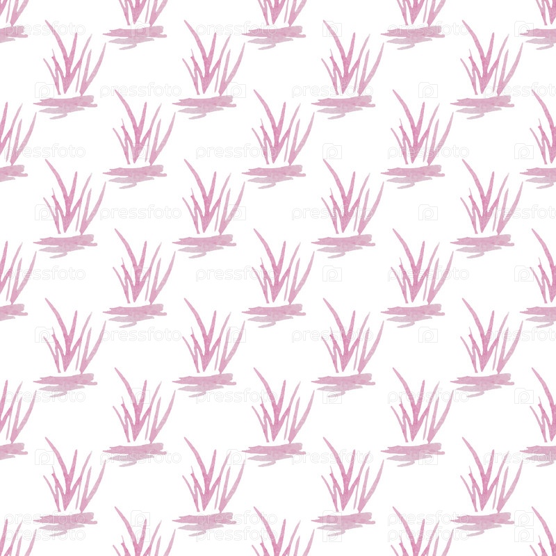 Бесшовный узор с розовой акварельной травой, нарисованной вручную на белом фоне. Для текстиля распечатайте. Природная органическая концепция
