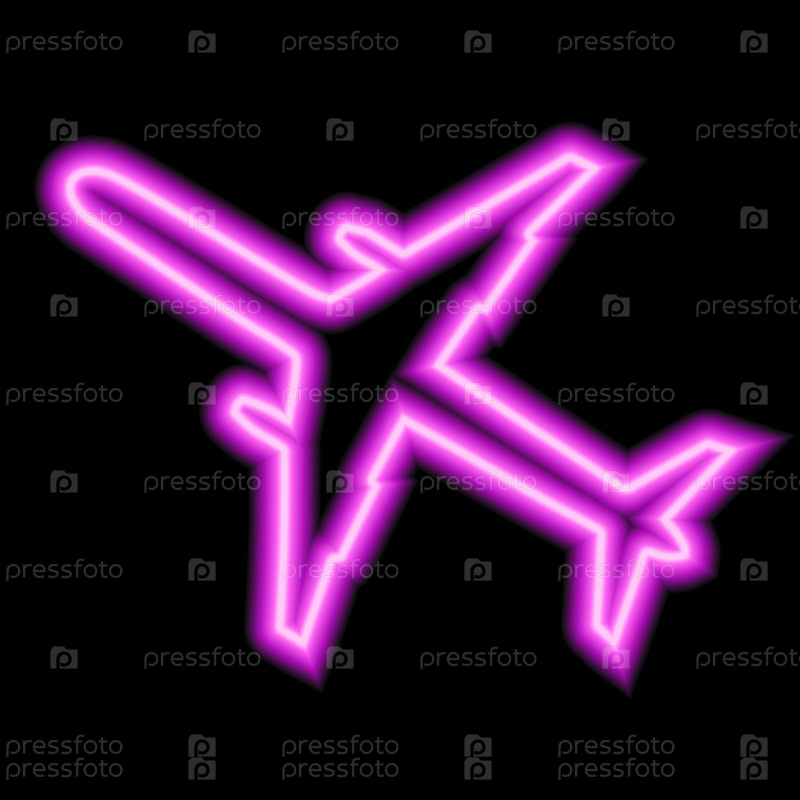 Розовая неоновая вывеска самолета на черном фоне. Векторная иллюстрация