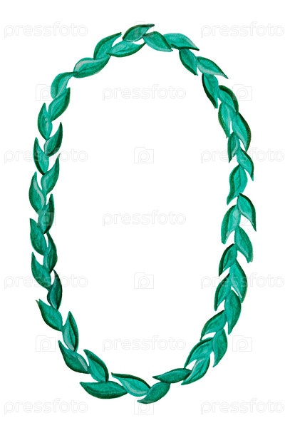 Акварельный рисунок номер 0 из зеленых листьев, выделенных на белом фоне. Цветочный стиль