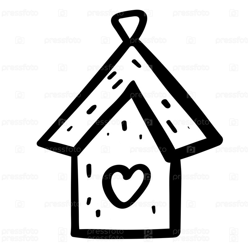 Деревянный скворечник рисованной иллюстрациив дудл стиле