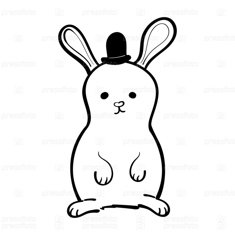 Векторная иллюстрация зайца или кролика в черном цилиндре