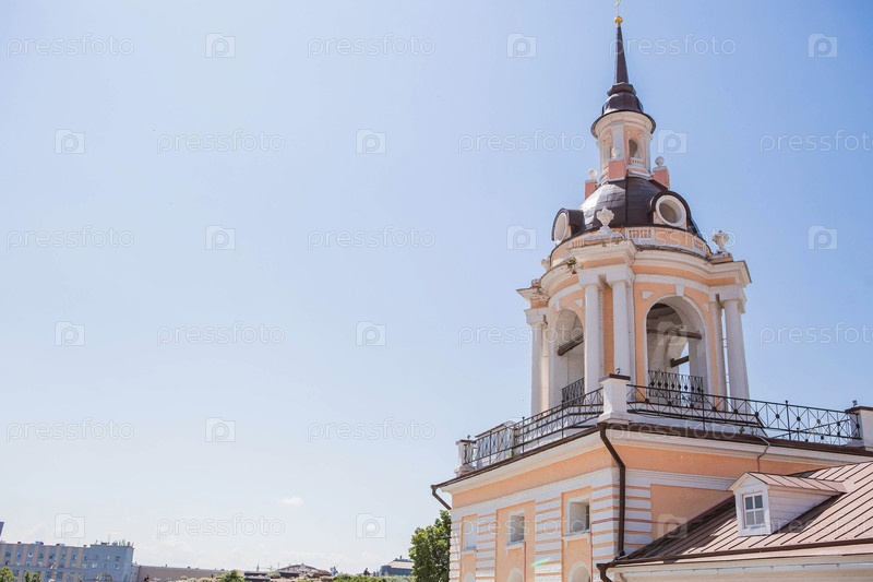 Москва, Россия: Церковь Максима Блаженного на Варварке возле Красной площади в солнечный летний день. Вид на храм со стороны парка «Зарядье»