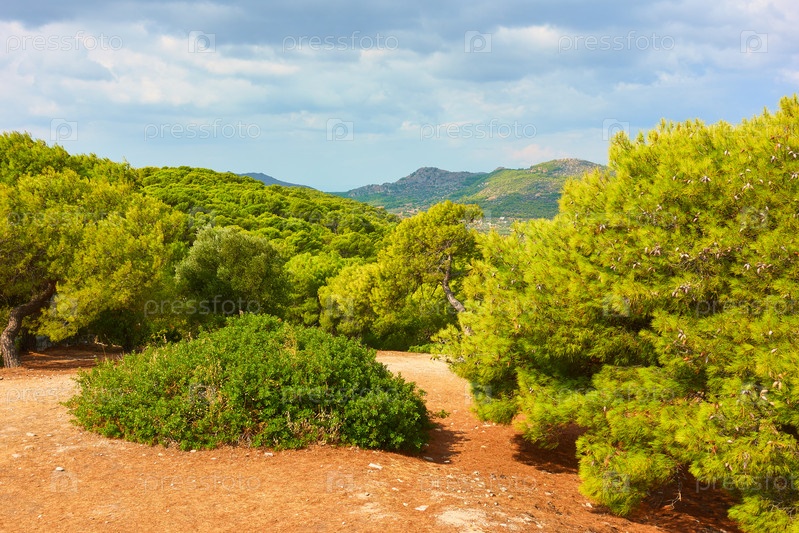 Панорамный вид на остров Эгина с хвойным лесом