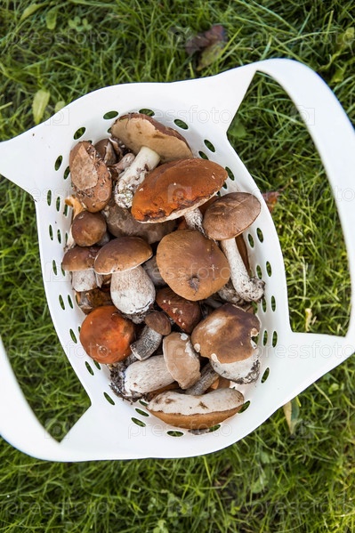 Благородные, королевские грибы. Грибы белые, подосиновики, подберезовики. Грибы в корзине. Сбор грибов осенью