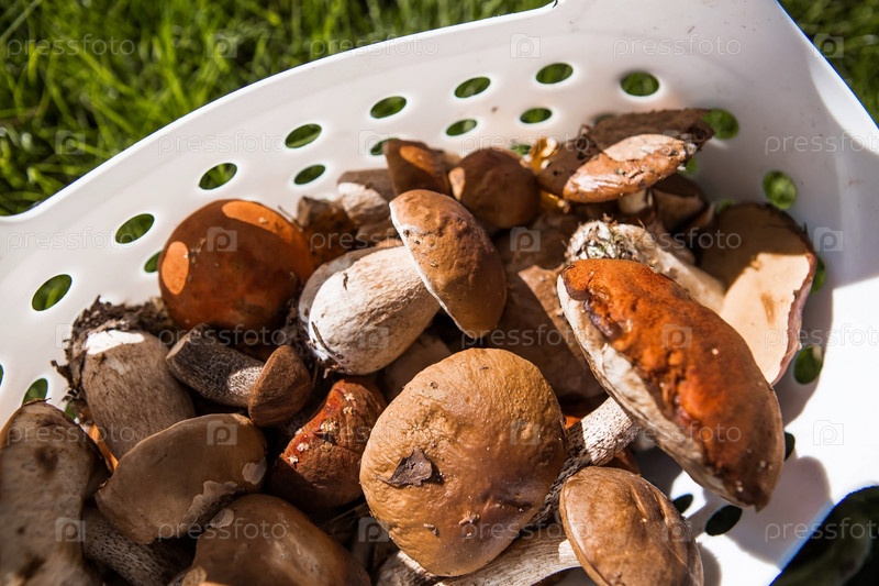 Благородные, королевские грибы. Грибы белые, подосиновики, подберезовики. Грибы в корзине. Сбор грибов осенью