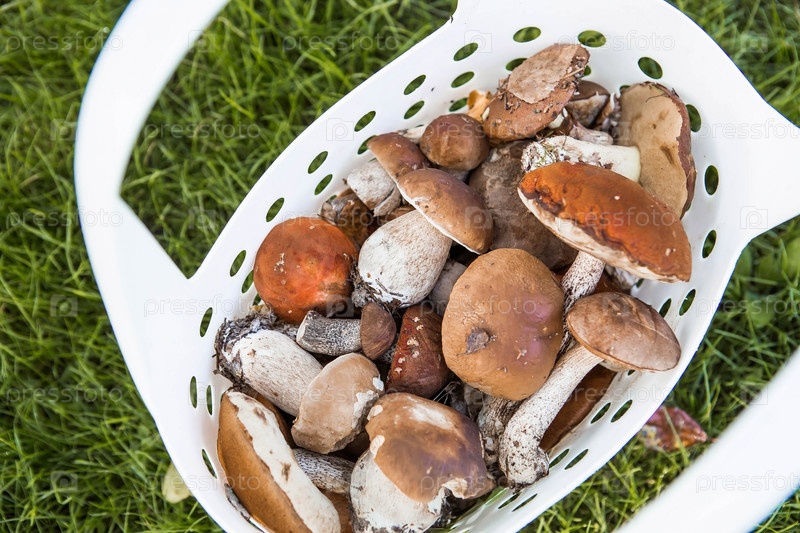 Благородные, королевские грибы. Грибы белые, подосиновики, подберезовики. Грибы в корзине. Сбор грибов осенью