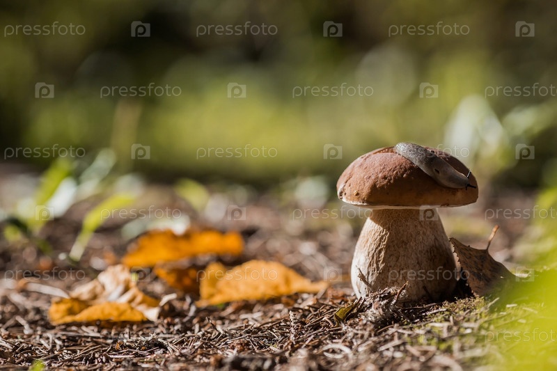 Благородный, королевский гриб. Подберезовики белые. Белые грибы в еловом лесу. Красивая текстура природного фона