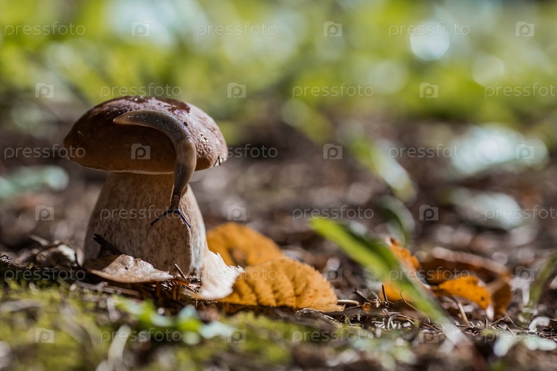 Благородный, королевский гриб. Подберезовики белые. Белые грибы в еловом лесу. Красивая текстура природного фона