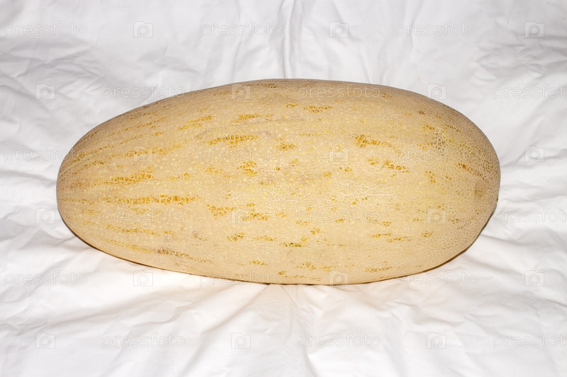 Мельон-торпеда продолговатой формы на белом фоне.День из Узбекистана.Мелён торпеды длинношерстной формы на белом фоне.Мелон Узбекистана.Взрослая мелочная сахарная дыня