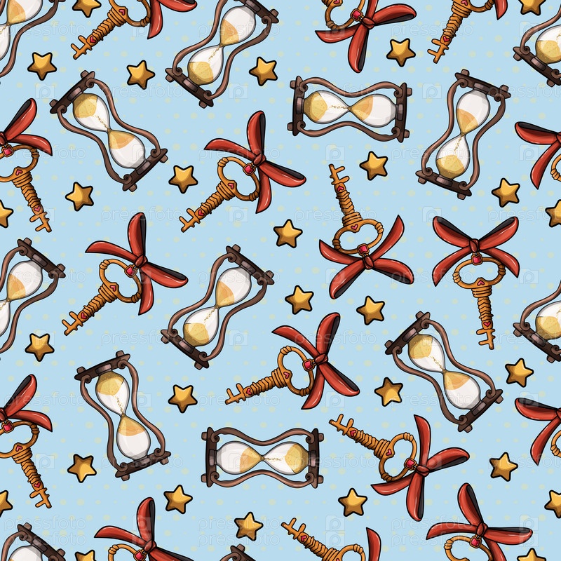 Песочные часы и ключ с бантом бесшовный ретро паттерн