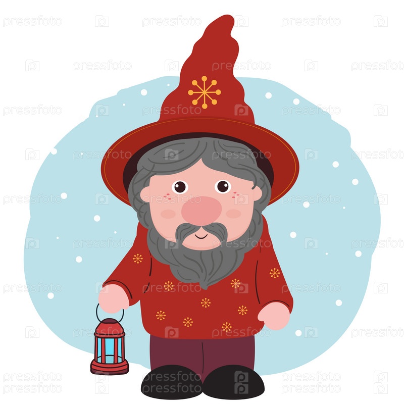 Гном в красном костюме с фонарем