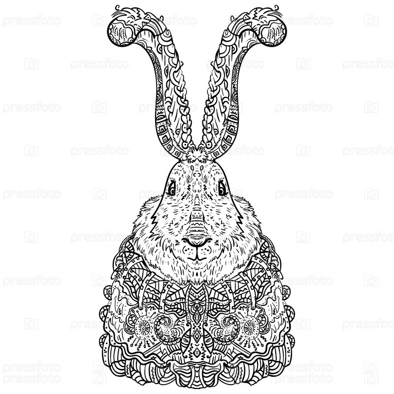 Кролик в зен дудл стиле раскраска