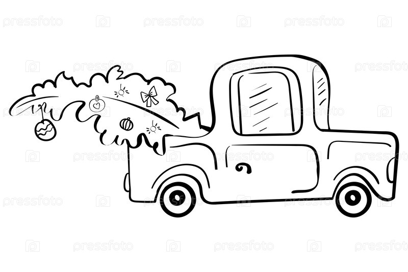 Автомобиль с елкой иллюстрация для раскрашивания