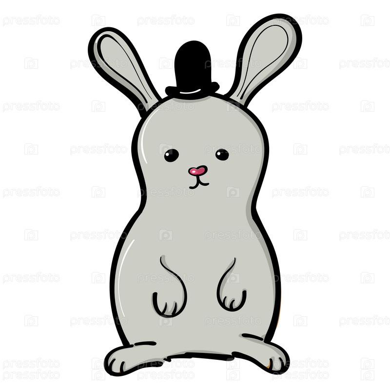 Мультяшная иллюстрация зайца или кролика в черном цилиндре