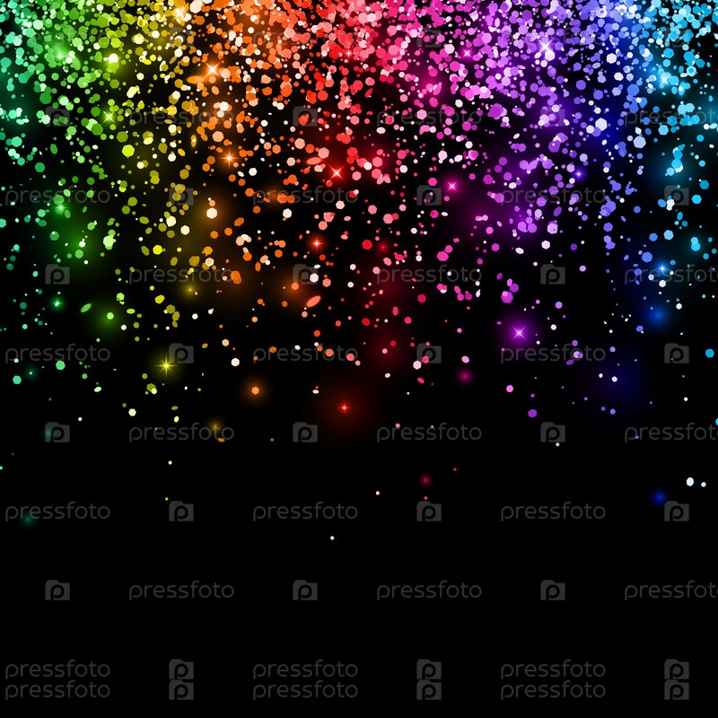 Многоцветный падающий блеск на черном фоне. Вектор