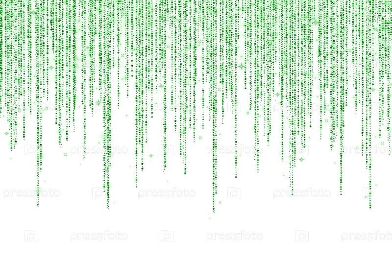 Зеленый блеск длинной гирлянды висит украшение на белом фоне. Вектор