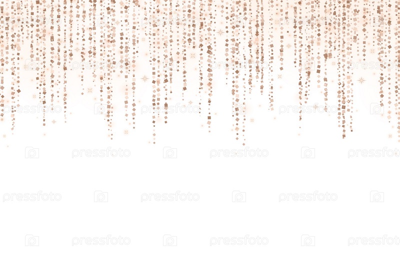 Бронзовая гирлянда дождя с блестками на белом фоне. Векторная иллюстрация