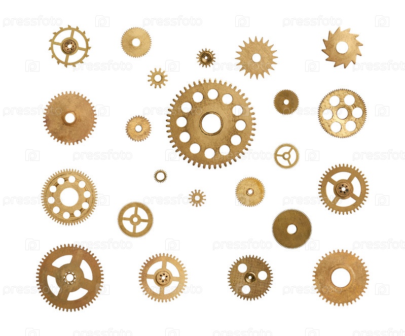 Коллекция шестеренок на белом фоне